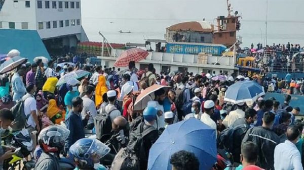 লকডাউন ঘোষণার পরে থেকে শিমুলিয়ায় ফেরিঘাটে মানুষের ঢল নেমেছে। দলে দলে রাজধানী ছাড়তে শুরু করেছে হাজারো মানুষ। অপরদিকে, বিভিন্ন পয়েন্টে পুলিশের চেকপোস্ট থাকায় ঘাটে আসার আগেই যানবাহন ফিরিয়ে দেয়া হচ্ছে। read more
